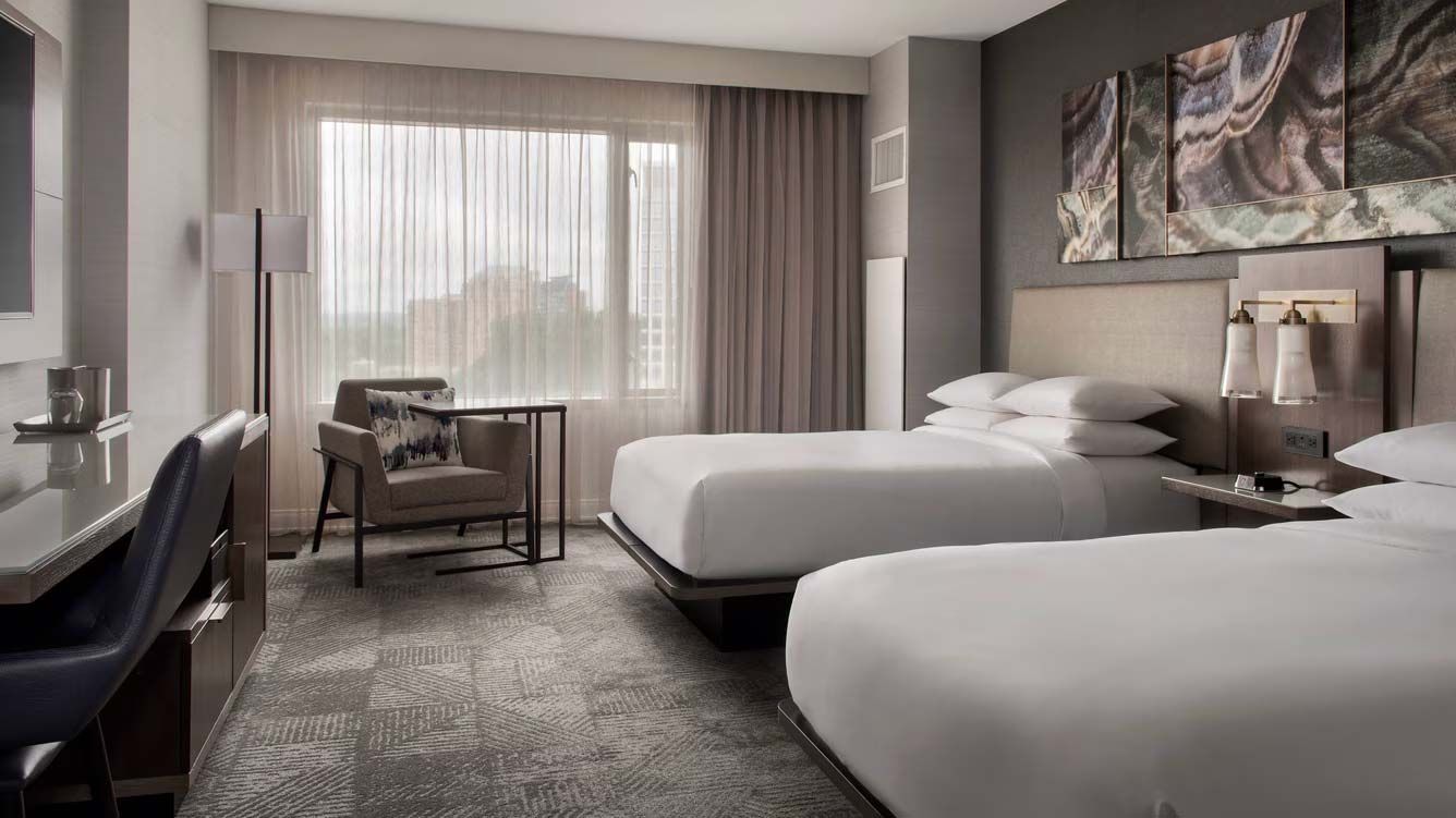Guests can enjoy a range of amenities, including a state-of-the-art fitness center, an inviting indoor pool, and several on-site dining options that serve a variety of culinary delights. The hotel is renowned for its expansive conference facilities, boasting over 50,000 square feet of versatile meeting and event space, making it a premier venue for conferences, weddings, and social gatherings.